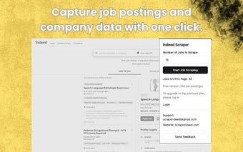 Scrape Indeed เป็นส่วนขยายของ Chrome ที่ออกแบบมาเพื่อช่วยผู้ใช้ในการดึงข้อมูลประกาศงานและข้อมูลบริษัทจาก Indeed ได้อย่างง่ายดาย เครื่องมือนี้ช่วยให้นักวิจัยตลาด ผู้สรรหาบุคลากร และผู้เชี่ยวชาญด้านทรัพยากรบุคคลสามารถทำการวิจัยตลาดเชิงลึกโดยการดึงข้อมูลการจ้างงานด้วยการคลิกเพียงครั้งเดียว ผู้ใช้สามารถติดตามการแข่งขัน ติดตามแนวโน้มการจ้างงาน และทำการเปรียบเทียบเงินเดือน ทำให้เป็นทรัพย์สินที่มีค่า สำหรับผู้ที่สนใจในการรับข้อมูลเชิงลึกเกี่ยวกับตลาดงาน
